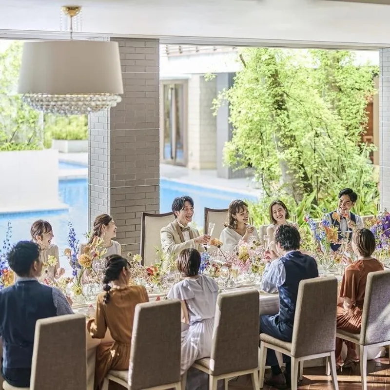 | 模擬披露宴 | 【水と緑と光きらめく3つの貸切リゾート空間】自然が溢れる華やかロケーションと、ガーデン&プール、大階段,オープンキッチンが併設のプライベート空間が人気♪3つの邸宅は演出、人数、スタイルも自由自在 |